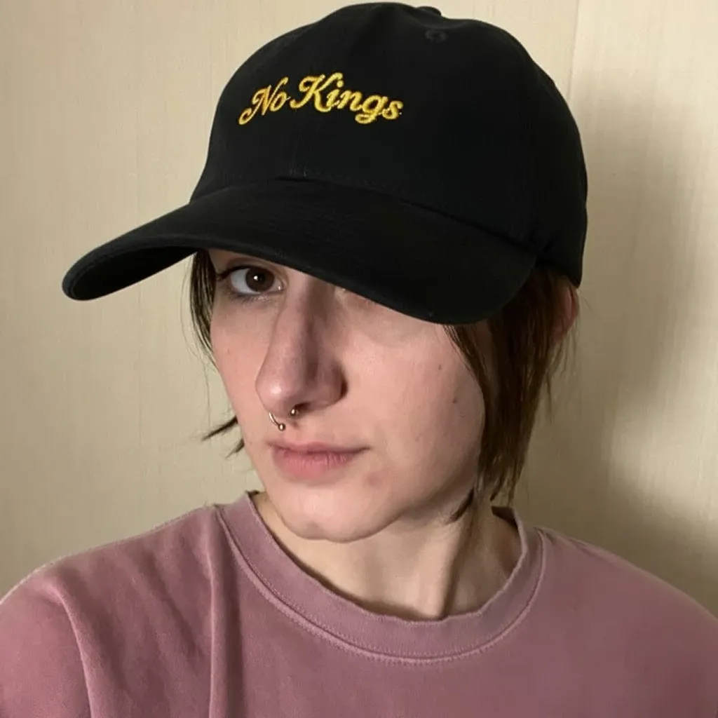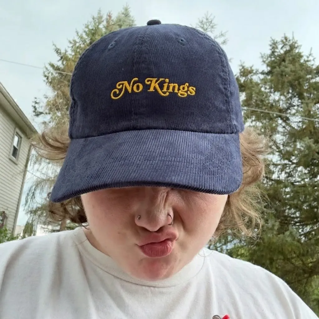 Signature Embroidery: “No Kings” statement stitched boldly front and center.